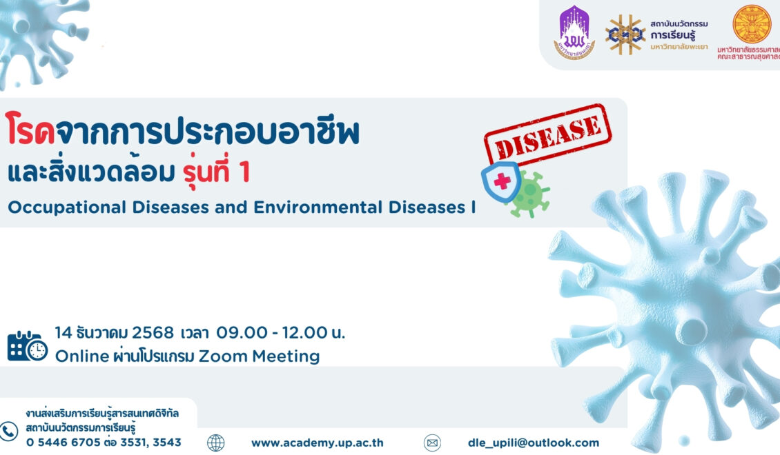 สถาบันนวัตกรรมการเรียนรู้ ขอประชาสัมพันธ์และเชิญชวนสมัครเข้าร่วมโครงการหลักสูตรฝึกอบรม (UP -Training) โรคจากการประกอบอาชีพและสิ่งแวดล้อม รุ่นที่ 1 ในวันอาทิตย์ที่ 14 ธันวาคม 2568 เวลา 09.00 – 12.00 น. ออนไลน์ผ่านโปรแกรม Zoom Meeting วิทยากรโดย ผู้ช่วยศาสตราจารย์ ดร.ณัฐกรณ์ ชูช่วย