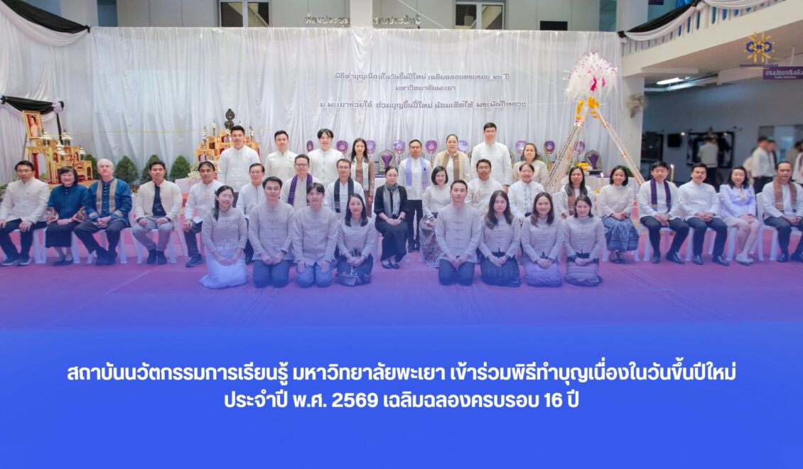 เมื่อวันศุกร์ที่ 9 มกราคม 2569 ผู้ช่วยศาสตราจารย์กาญจนุรัตน์ ไมรินทร์ ดร.ฤทธิ์ติกร สมปาน รองผู้อำนวยการสถาบันนวัตกรรมการเรียนรู้ พร้อมด้วยบุคลากรสถาบันนวัตกรรมการเรียนรู้ เข้าร่วมพิธีทำบุญเนื่องในวันขึ้นปีใหม่ ประจำปี พ.ศ. 2569 เฉลิมฉลองครบรอบ 16 ปี มหาวิทยาลัยพะเยา “ม.พะเยาร่วมใจ๋ ฮ่อมบุญปี๋ใหม่ น้อมเทิดไท้ พระพันปีหลวง” และน้อมรำลึกในพระมหากรุณาธิคุณอันหาที่สุดมิได้ แด่ สมเด็จพระนางเจ้าสิริกิติ์ พระบรมราชินีนาถ พระบรมราชชนนีพันปีหลวง เพื่อเป็นสิริมงคลแก่ชีวิตรวมทั้งร่วมกันธำรงรักษาสืบสานมรดกทางวัฒนธรรมของชาวล้านนา อันดีงามสืบไป ณ ลานอเนกประสงค์ ชั้น 1 อาคารสำนักงานอธิการบดี มหาวิทยาลัยพะเยา