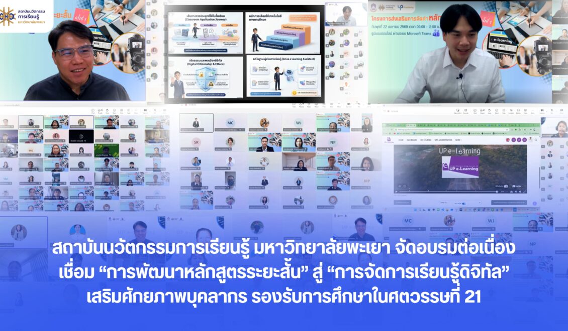 เมื่อวันพุธที่ 22 เมษายน 2569 สถาบันนวัตกรรมการเรียนรู้ มหาวิทยาลัยพะเยา จัดโครงการพัฒนาศักยภาพบุคลากรด้านการจัดการเรียนรู้ ผ่านระบบออนไลน์ Microsoft Teams โดยดำเนินกิจกรรมต่อเนื่องตลอดวัน แบ่งเป็น 2 ช่วง ได้แก่ ช่วงเช้าโดยงานส่งเสริมการเรียนรู้ตลอดชีวิต และช่วงบ่ายโดยงานพัฒนานวัตกรรมการเรียนรู้ สำนักงานสถาบันนวัตกรรมการเรียนรู้